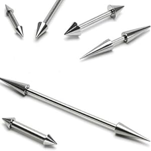 Straight Barbell - Hantel aus 316L Chirurgenstahl mit Spitzen. Beide Spitzen sind abschraubbar. Spitzenlänge: 5 mm. Schönes Piercing für z.B. Zunge, Brustwarze oder als Industrial.